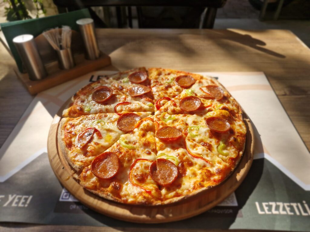 Sucuklu Pizza Domates Sosu, Mozzarella, Sucuk, Kırmızı Biber, Yeşil Biber Fiyat:300 TL / 350 TL / 400 TL