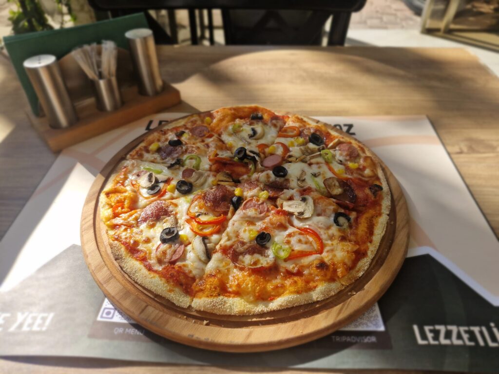 Pastırmalı Pizza Domates Sosu, Mozzarella, Pastırma, Kırmızı Biber, Yeşil Biber Fiyat:360 TL / 420 TL / 480 TL
